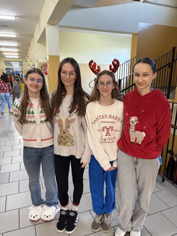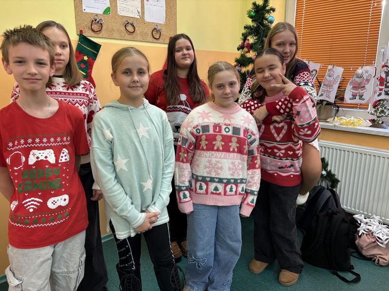 Samorząd Uczniowski zaproponował również dni tematyczne związane z ubiorem. W środę, 17 grudnia, uczniowie i nauczyciele ubrali się w odcieniach czerwieni, symbolizujących ciepło, radość i świąteczną energię. W czwartek szkolne korytarze rozbłysły niczym choinka — dominowały cekiny, brokat oraz świecące elementy, które przypominały świąteczne bombki. Z kolei w piątek królowały świąteczne sweterki, pełne reniferów, choinek i zimowych motywów, które wywoływały uśmiech na twarzach wszystkich uczestników.