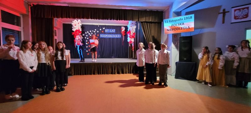 Z tej okazji w Szkole Podstawowej im. Juliusza Słowackiego w Golinie odbyła się refleksyjna akademia upamiętniająca 107. rocznicę odzyskania niepodległości.