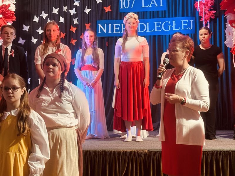 Po zakończeniu części artystycznej głos zabrała dyrektor Ewa Ignaczak, która podziękowała uczniom oraz nauczycielom za przygotowanie uroczystości i podkreśliła, jak ważne jest kształtowanie w młodych ludziach postaw patriotycznych oraz dumy z bycia Polakiem.