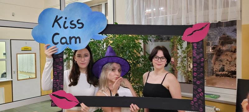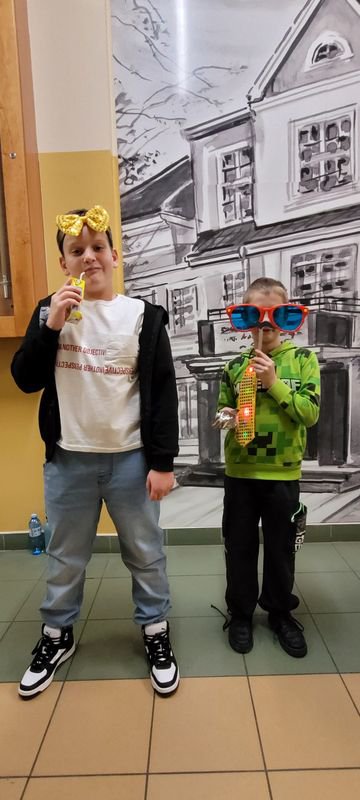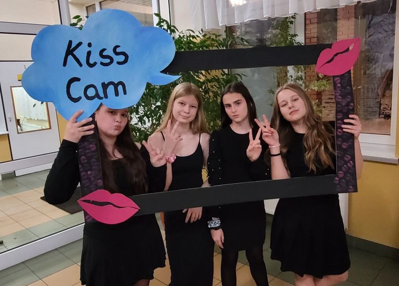 Ogromną popularnością cieszyły się również zabawne fotobudki, wyposażone w kolorowe gadżety – okulary, kapelusze, śmieszne tabliczki i rekwizyty. Uczniowie chętnie robili pamiątkowe zdjęcia z przyjaciółmi, tworząc wesołe wspomnienia z tego wyjątkowego wieczoru.