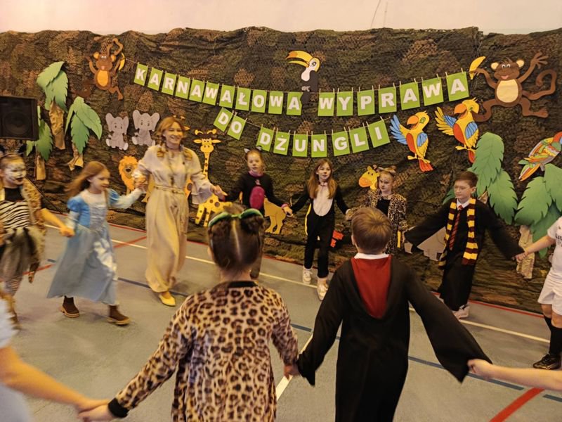 „Karnawałowa wyprawa do dżungli” była nie tylko okazją do świetnej zabawy, ale przede wszystkim do integracji i wspólnego przeżywania radosnych chwil całej społeczności szkolnej.