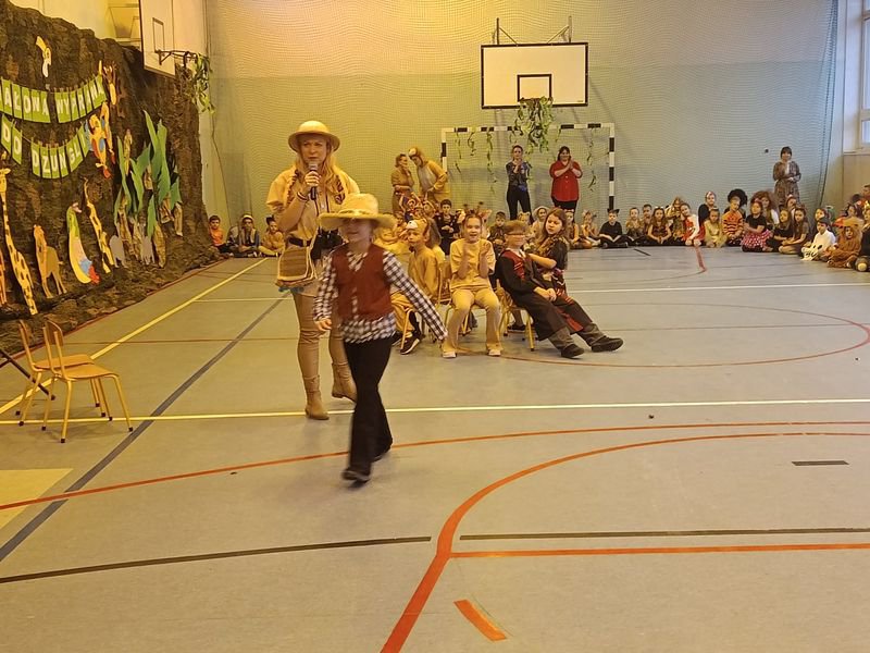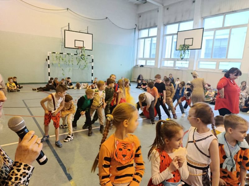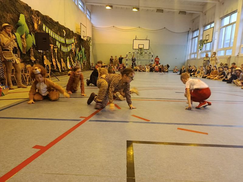 Sala gimnastyczna zamieniła się w tropikalny las pełen dzikich zwierząt, kolorowych roślin oraz zagadkowych miejsc. Dekoracje zachwycały od pierwszego wejrzenia. Było wesoło oraz aktywnie. Nad bezpieczeństwem podczas zabawy czuwali wszyscy nauczyciele organizujący imprezę.