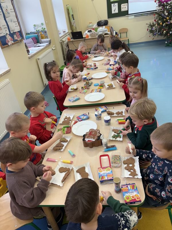 18 grudnia 2025 roku w oddzia艂ach przedszkolnych unosi艂 si臋 wyj膮tkowy, 艣wi膮teczny zapach korzennych przypraw. Dzieci z ogromnym zaanga偶owaniem dekorowa艂y pierniczki. Rozwija艂y przy tym swoj膮 kreatywno艣膰 i zdolno艣ci manualne. Kolorowe lukry, posypki i u艣miechy sprawi艂y, 偶e sala zamieni艂a si臋 w prawdziw膮 piernikow膮 krain臋. By艂 to czas rado艣ci i wsp贸lnej zabawy, kt贸ra wprowadzi艂a nas w magiczny czas. Dzi臋kujemy rodzicom za ogromne zaanga偶owanie w t膮 s艂odk膮 inicjatyw臋.