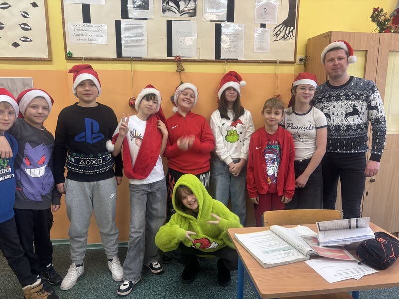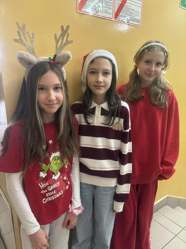 Dzieci chętnie włączyły się w zabawę, przychodząc do szkoły w czapkach Mikołaja, świątecznych sweterkach, reniferowych opaskach i innych fantazyjnych strojach. Kreatywność uczniów jak zawsze nie miała granic – wśród nich można było spotkać Grinchów, a nawet renifery.