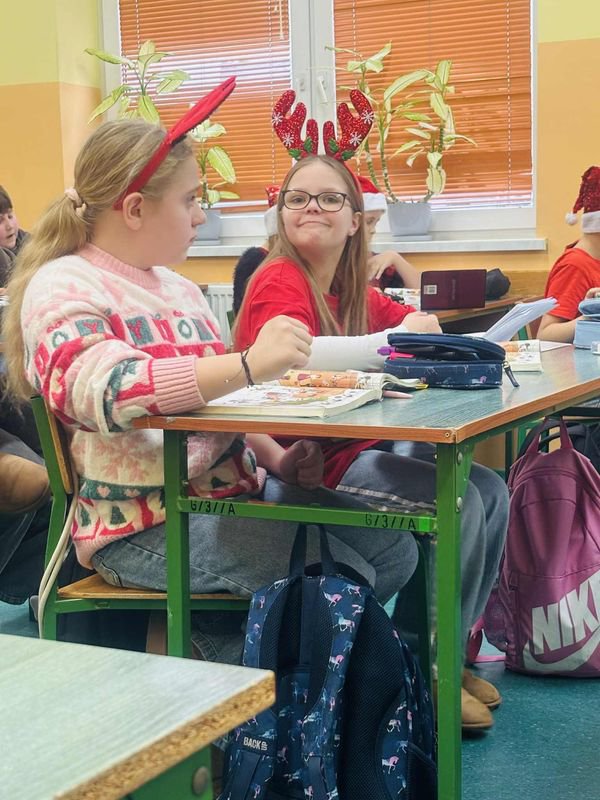 Podczas przerw na szkolnych głośnikach rozbrzmiewała świąteczna muzyka, która wprowadzała wszystkich w magiczny nastrój. Melodyjne dźwięki popularnych świątecznych piosenek sprawiły, że korytarze tętniły energią i radością, a uczniowie spontanicznie podśpiewywali znane melodie.