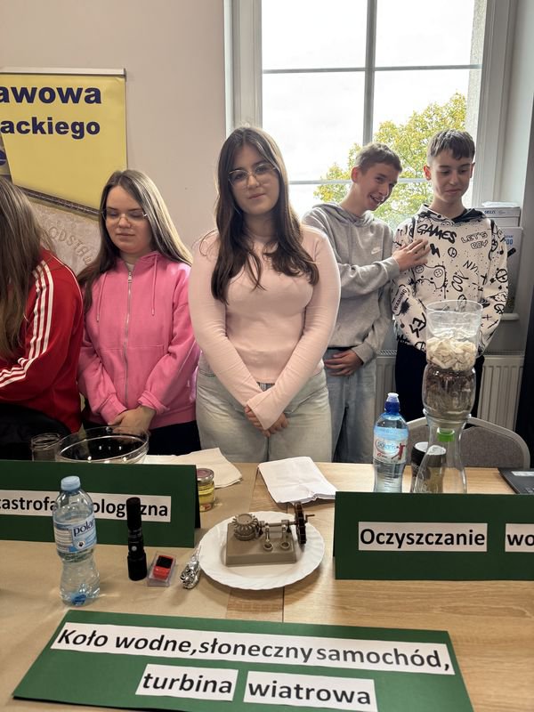 Uczniowie naszej szkoły zaprezentowali serię doświadczeń ekologicznych, które pokazywały m.in.: sposoby oczyszczania wody, działanie filtrów naturalnych, produkcję prądu, lawę, ekowazony, działanie słonecznego samochodu, turbinę wiatrową, katastrofę ekologiczną, koło wodne, a także wzrost rzeżuchy w określonych warunkach.