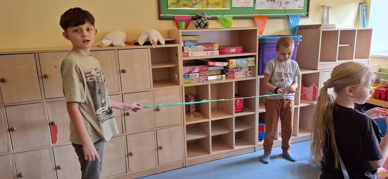 Każdy przygotował swoją marionetkę, a potem – za pomocą sznureczków – wprawił ją w ruch w rytm muzyki. 🎶