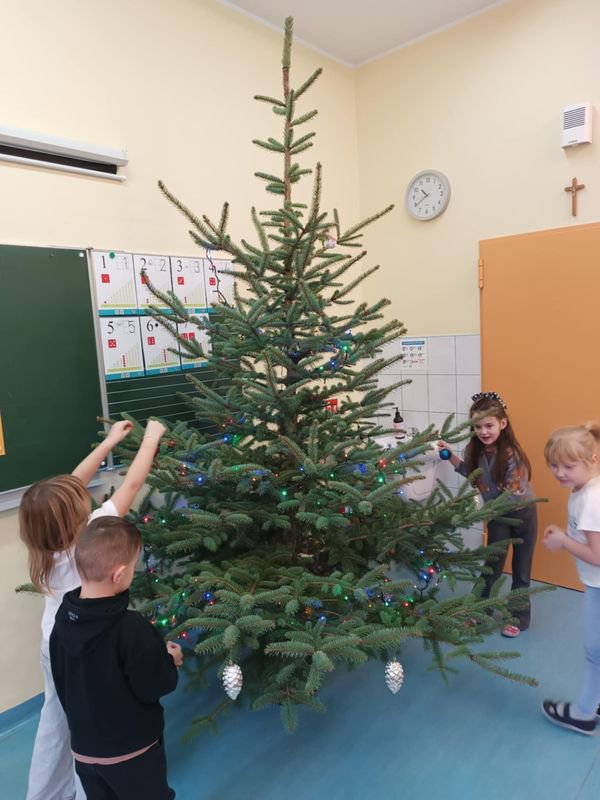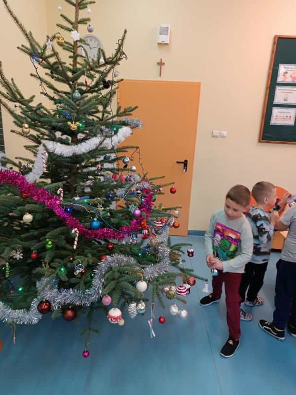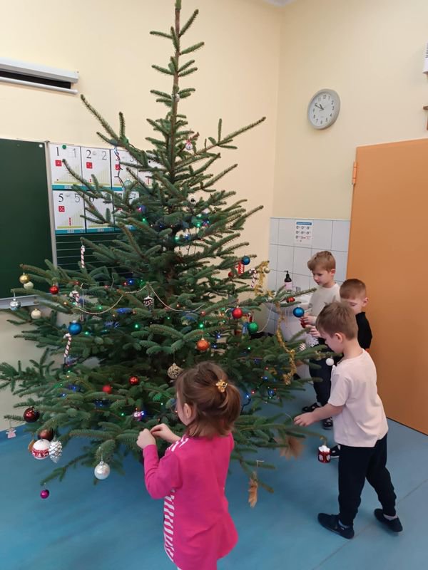 Choinka prezentuje się wspaniale i przypomina nam wszystkim, że święta to czas radości, wspólnoty i tworzenia pięknych wspomnień. Dziękujemy Rodzicom za ich zaangażowanie i uśmiechy, które rozświetliły ten dzień bardziej niż światełka na choince.