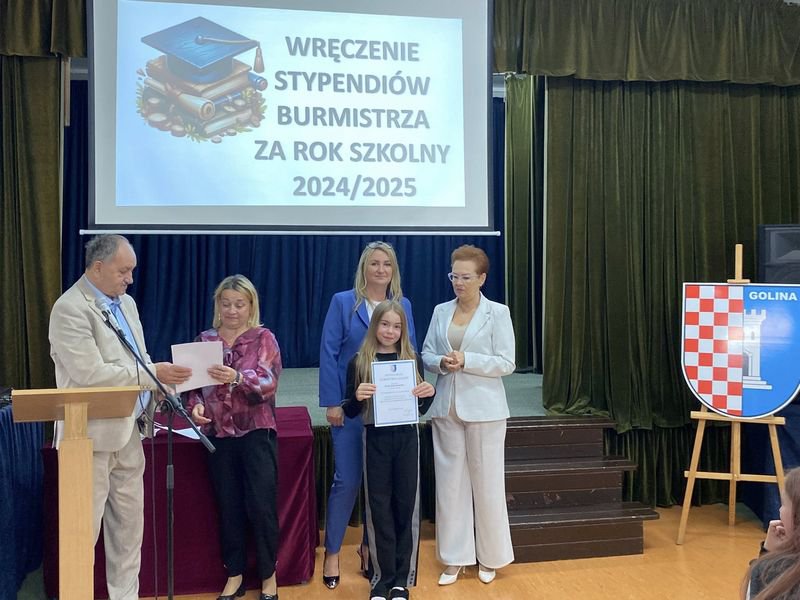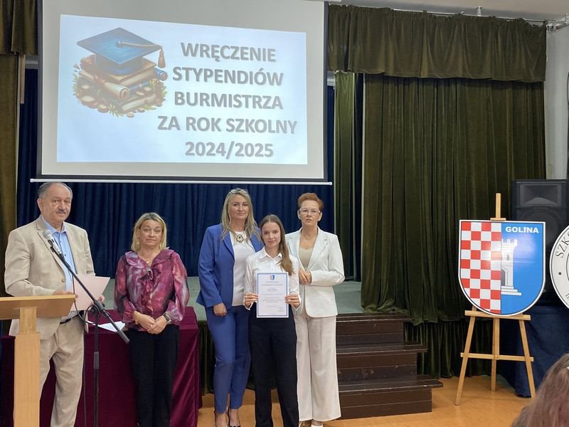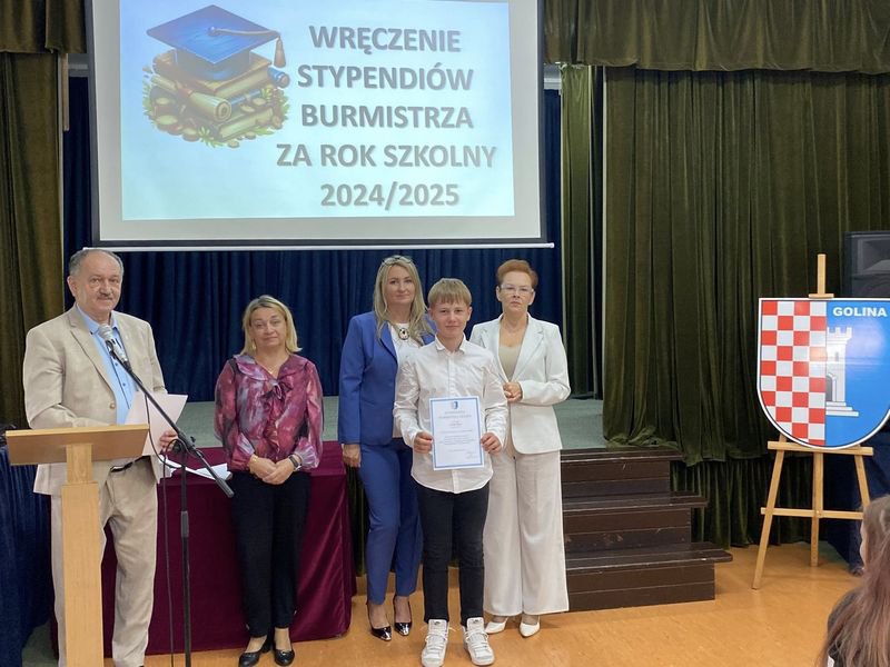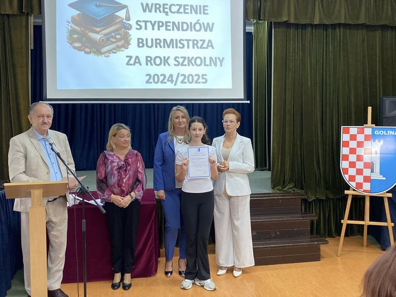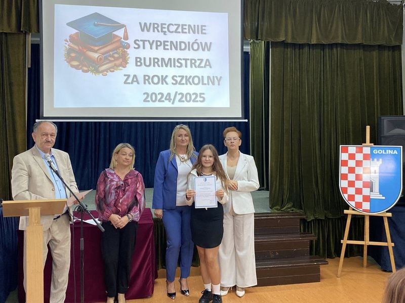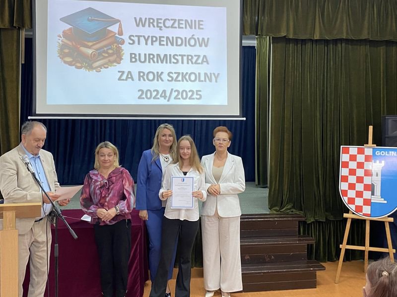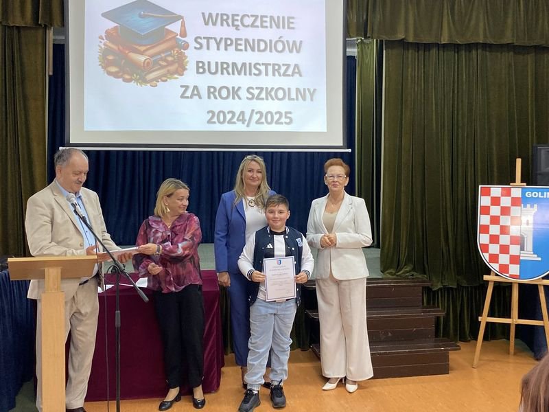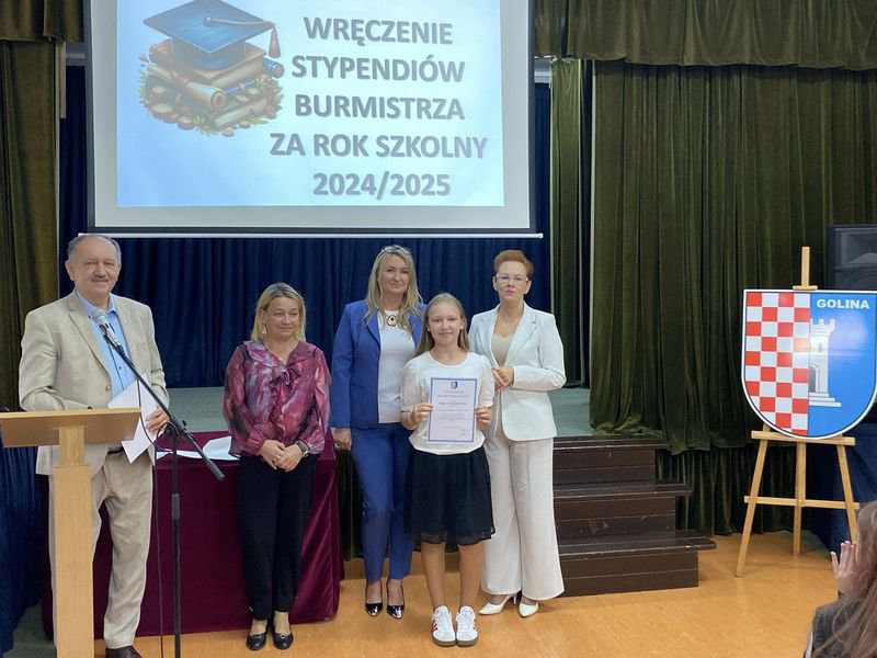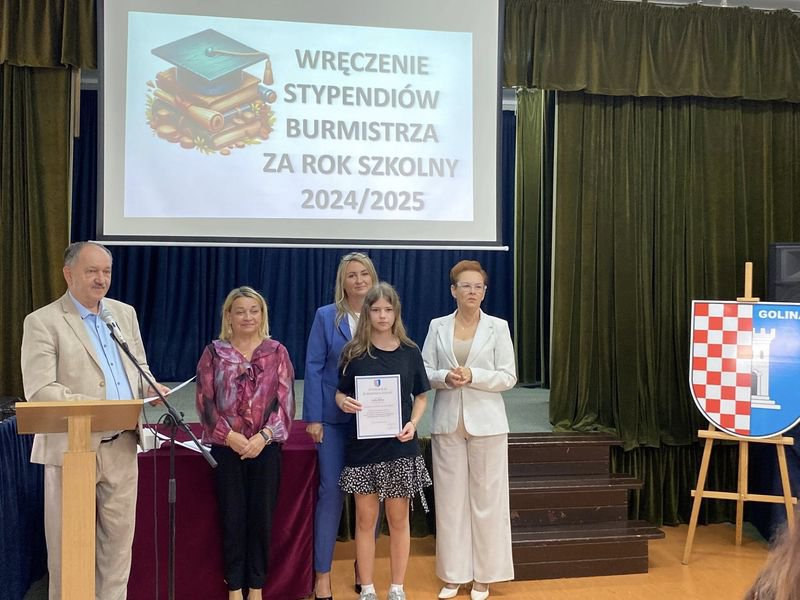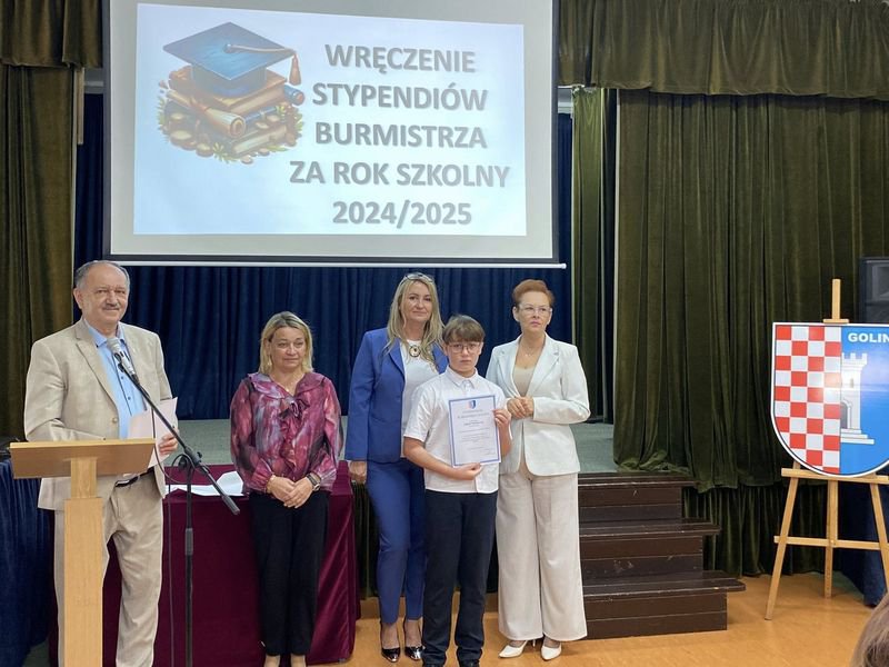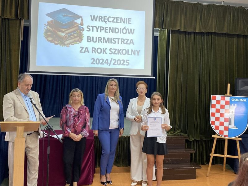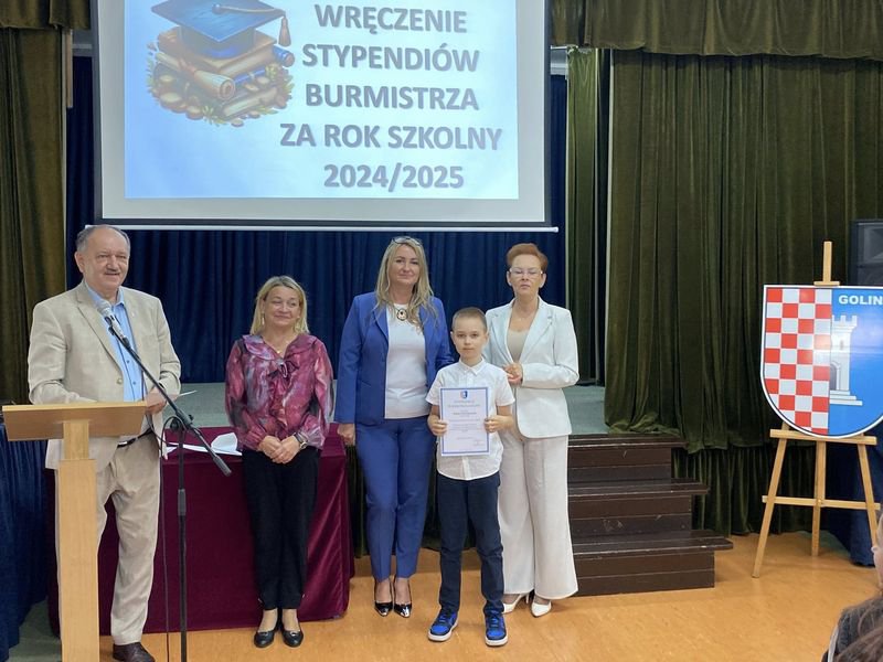 22 września w auli Szkoły Podstawowej im. Juliusza Słowackiego w Golinie miało miejsce uroczyste wręczenie Stypendiów Burmistrza Goliny Mirosława Durczyńskiego. Uczniowie z gminy Golina zostali docenieni nie tylko za osiągnięcia naukowe, ale także sportowe zdobyte w konkursach, turniejach i olimpiadach. Jest to niezwykłe wyróżnienie i motywacja do dalszej pracy. Dyplomy wręczyli Burmistrz Goliny Mirosław Durczyński, Przewodnicząca Rady Miejskiej Urszula Furmaniak, kierownik Centrum Usług Wspólnych Emilia Bajdek oraz dyrektor szkoły Ewa Kutnik.