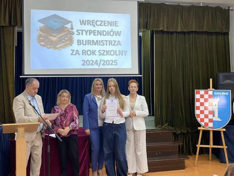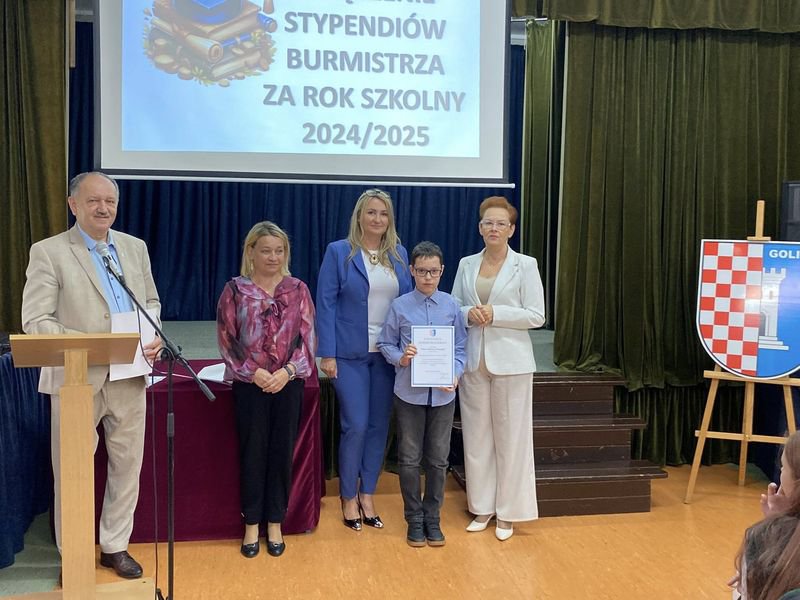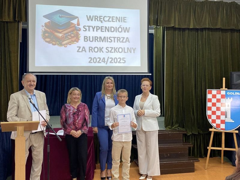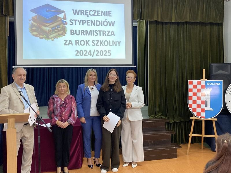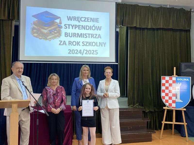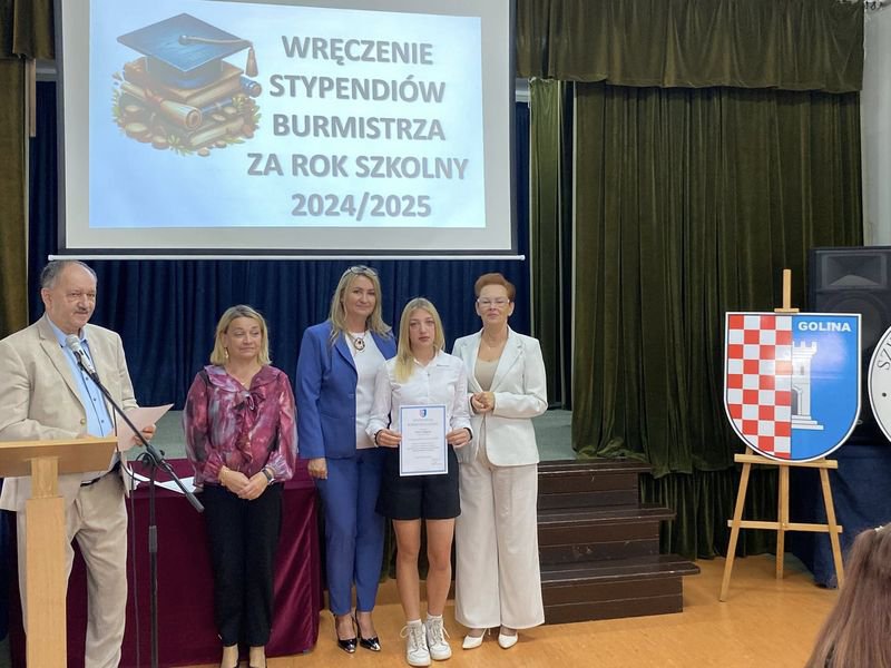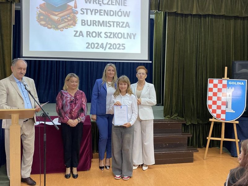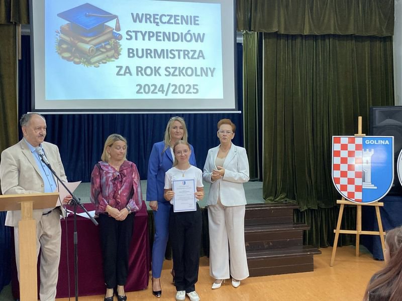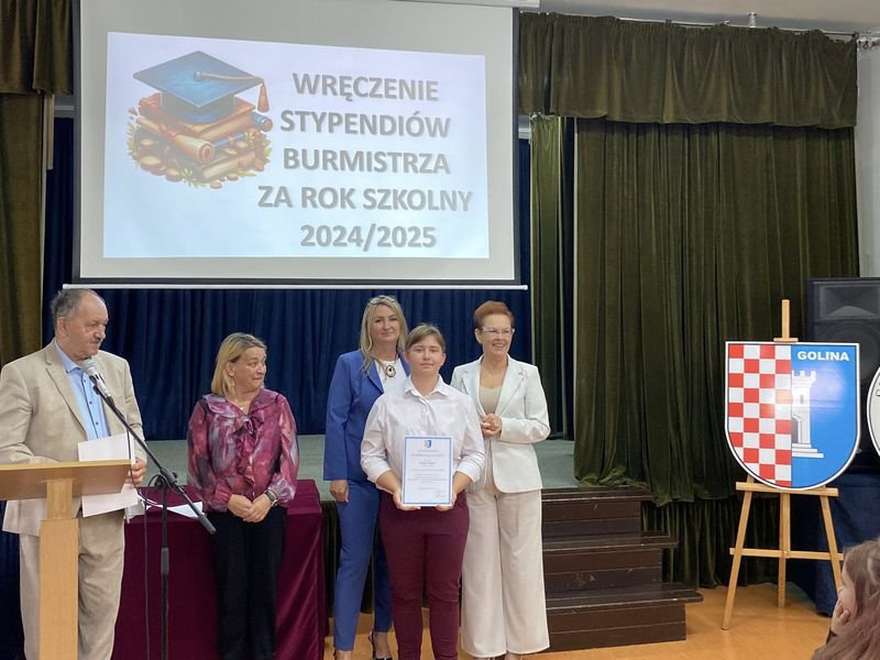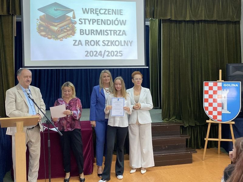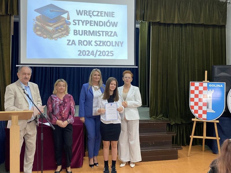 22 września w auli Szkoły Podstawowej im. Juliusza Słowackiego w Golinie miało miejsce uroczyste wręczenie Stypendiów Burmistrza Goliny Mirosława Durczyńskiego. Uczniowie z gminy Golina zostali docenieni nie tylko za osiągnięcia naukowe, ale także sportowe zdobyte w konkursach, turniejach i olimpiadach. Jest to niezwykłe wyróżnienie i motywacja do dalszej pracy. Dyplomy wręczyli Burmistrz Goliny Mirosław Durczyński, Przewodnicząca Rady Miejskiej Urszula Furmaniak, kierownik Centrum Usług Wspólnych Emilia Bajdek oraz dyrektor szkoły Ewa Kutnik.