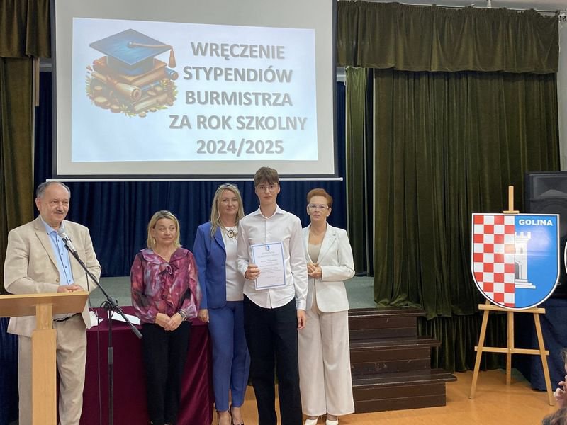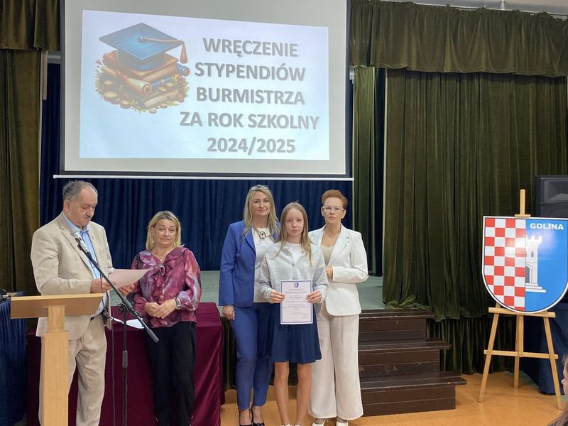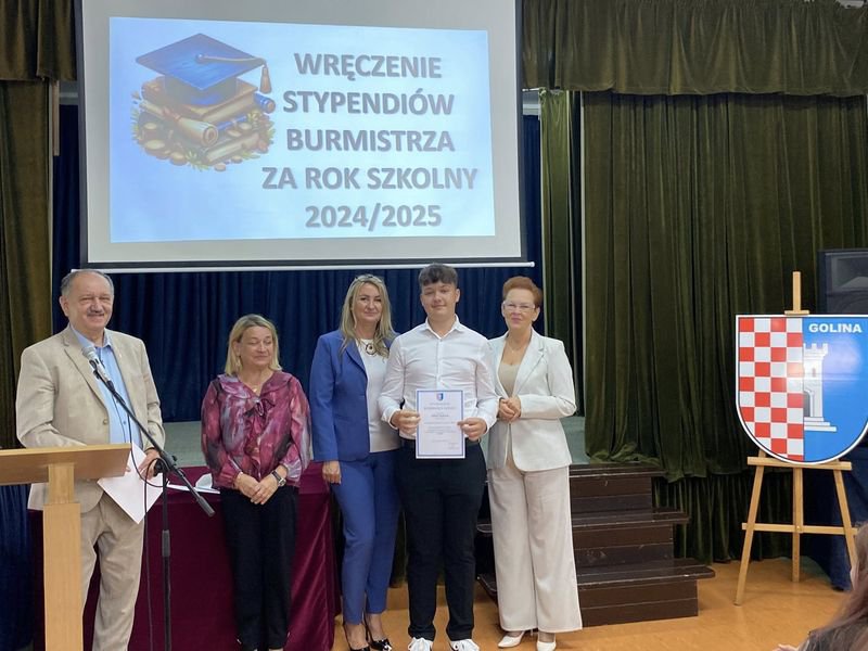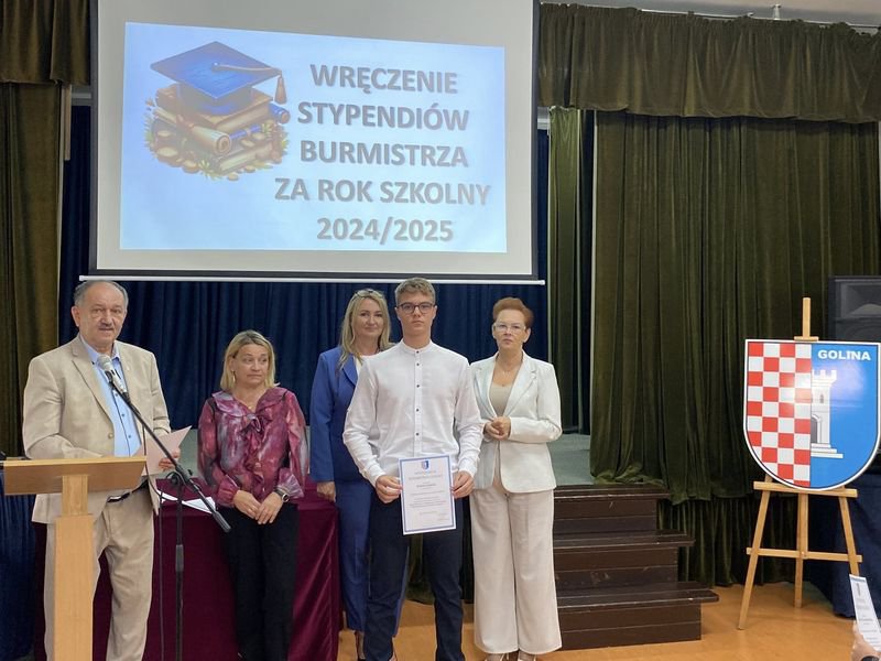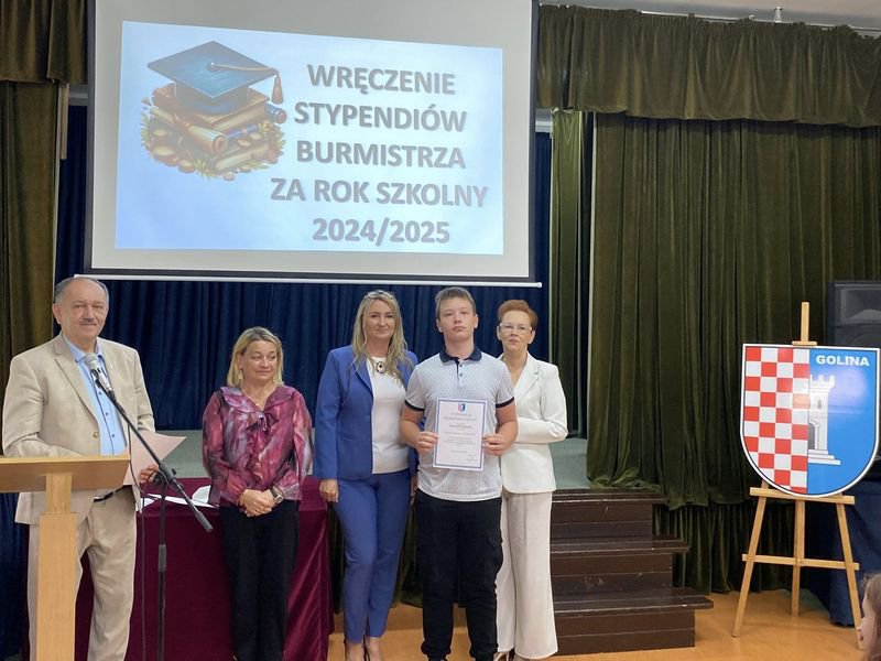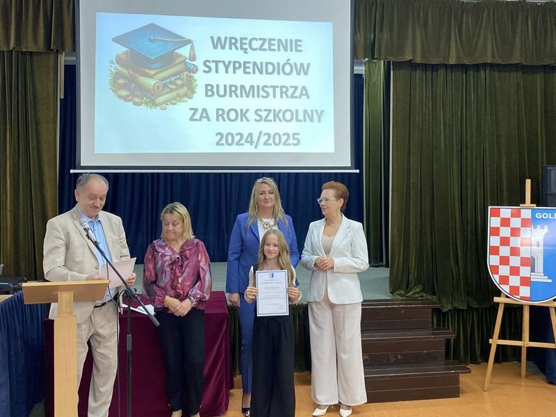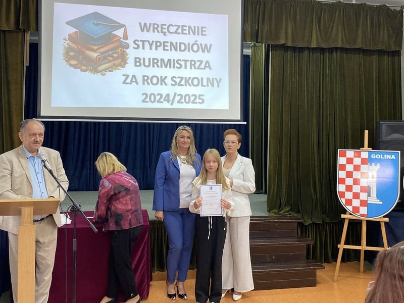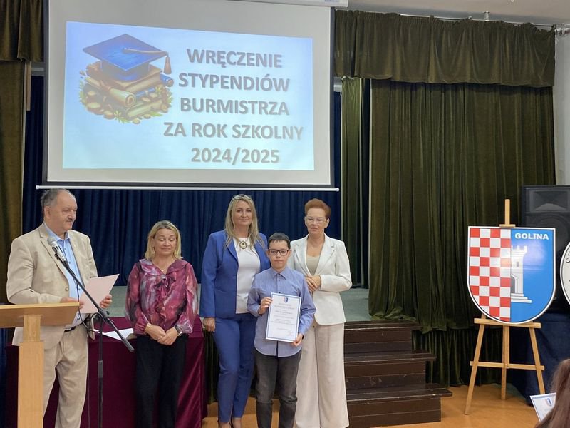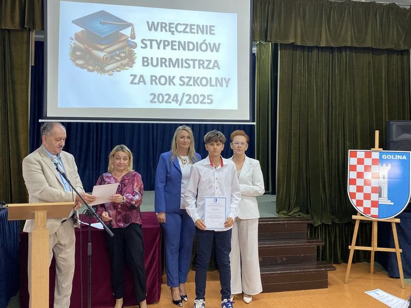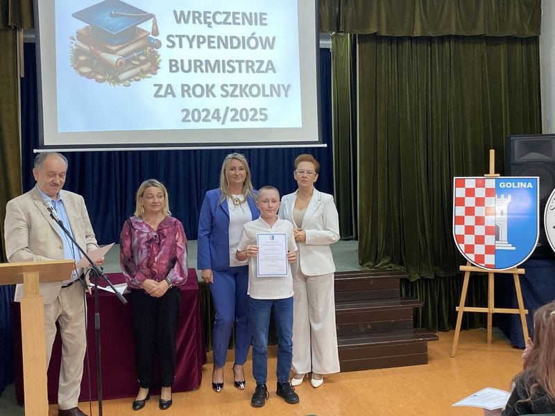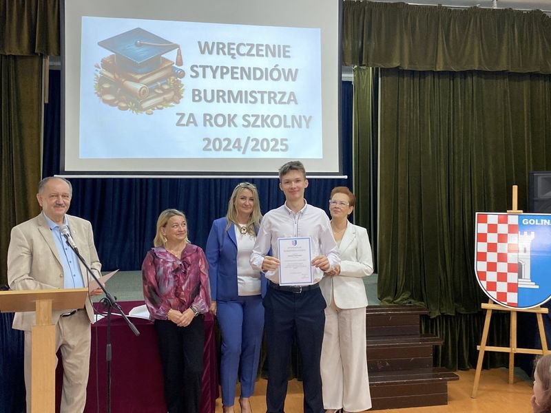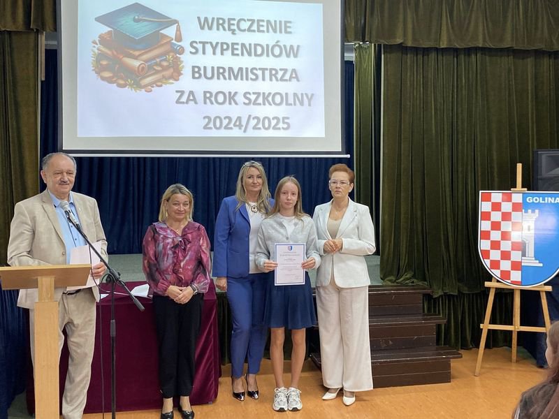 22 września w auli Szkoły Podstawowej im. Juliusza Słowackiego w Golinie miało miejsce uroczyste wręczenie Stypendiów Burmistrza Goliny Mirosława Durczyńskiego. Uczniowie z gminy Golina zostali docenieni nie tylko za osiągnięcia naukowe, ale także sportowe zdobyte w konkursach, turniejach i olimpiadach. Jest to niezwykłe wyróżnienie i motywacja do dalszej pracy. Dyplomy wręczyli Burmistrz Goliny Mirosław Durczyński, Przewodnicząca Rady Miejskiej Urszula Furmaniak, kierownik Centrum Usług Wspólnych Emilia Bajdek oraz dyrektor szkoły Ewa Kutnik.
