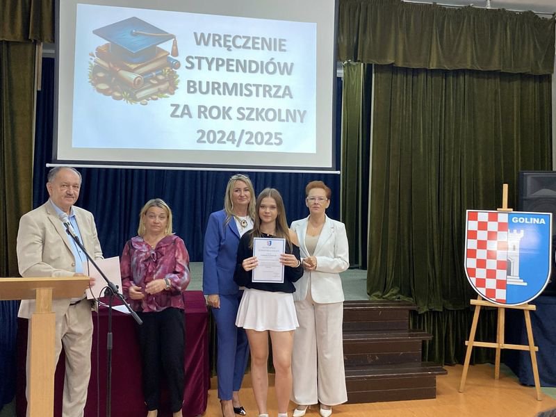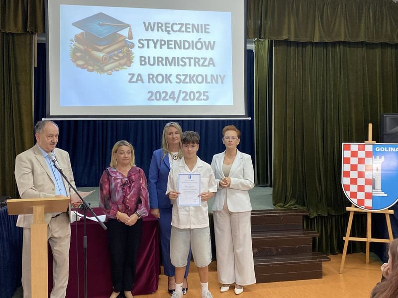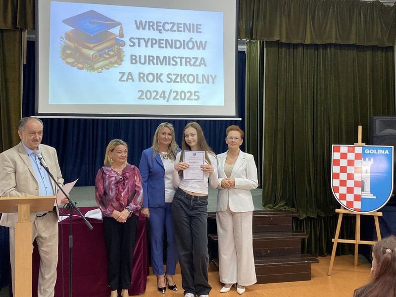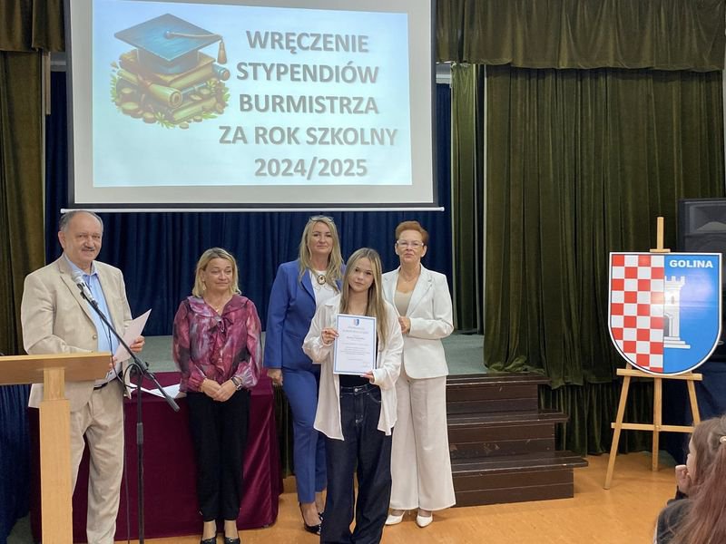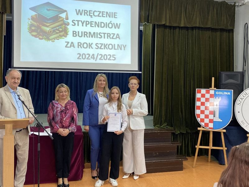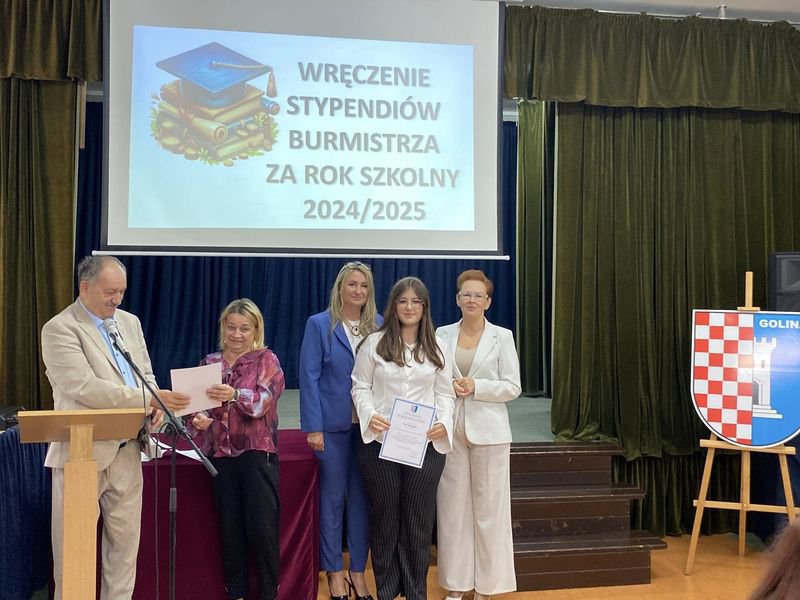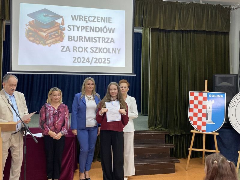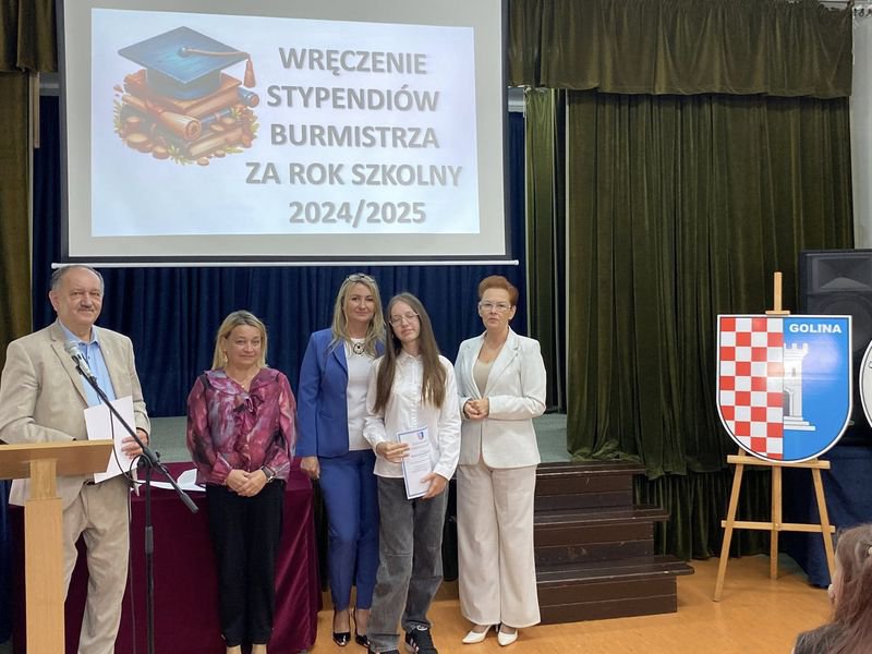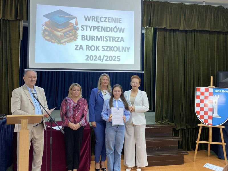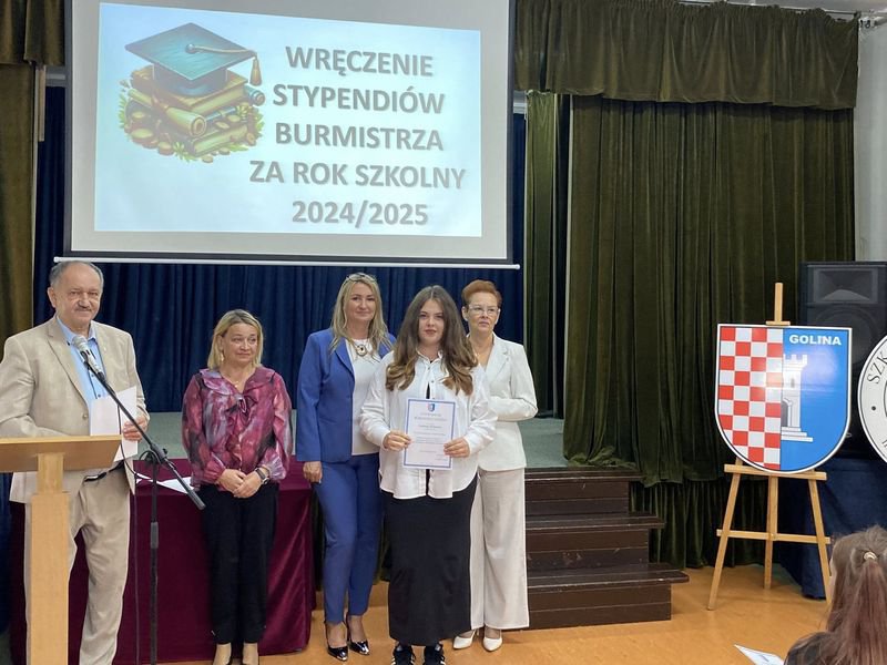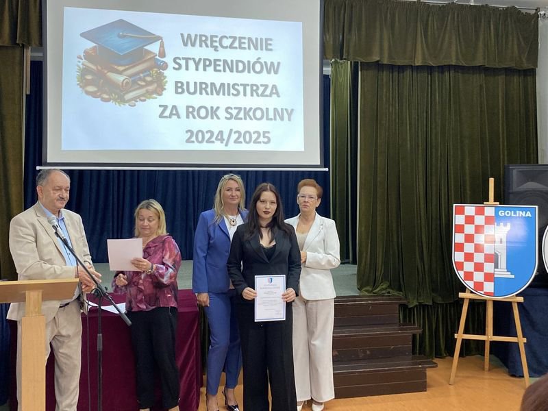 22 września w auli Szkoły Podstawowej im. Juliusza Słowackiego w Golinie miało miejsce uroczyste wręczenie Stypendiów Burmistrza Goliny Mirosława Durczyńskiego. Uczniowie z gminy Golina zostali docenieni nie tylko za osiągnięcia naukowe, ale także sportowe zdobyte w konkursach, turniejach i olimpiadach. Jest to niezwykłe wyróżnienie i motywacja do dalszej pracy. Dyplomy wręczyli Burmistrz Goliny Mirosław Durczyński, Przewodnicząca Rady Miejskiej Urszula Furmaniak, kierownik Centrum Usług Wspólnych Emilia Bajdek oraz dyrektor szkoły Ewa Kutnik.