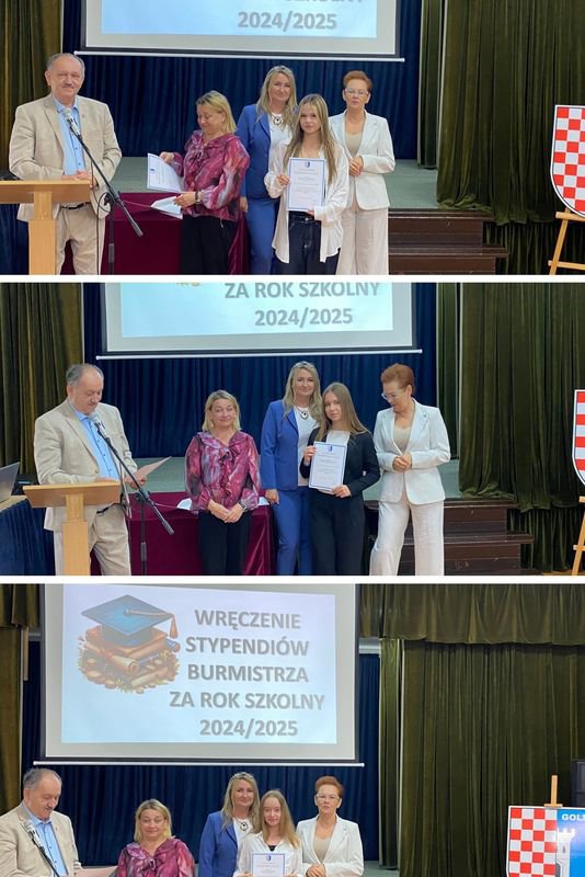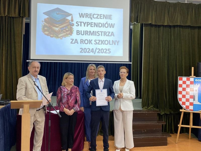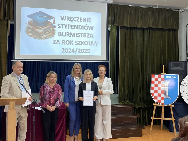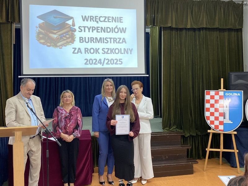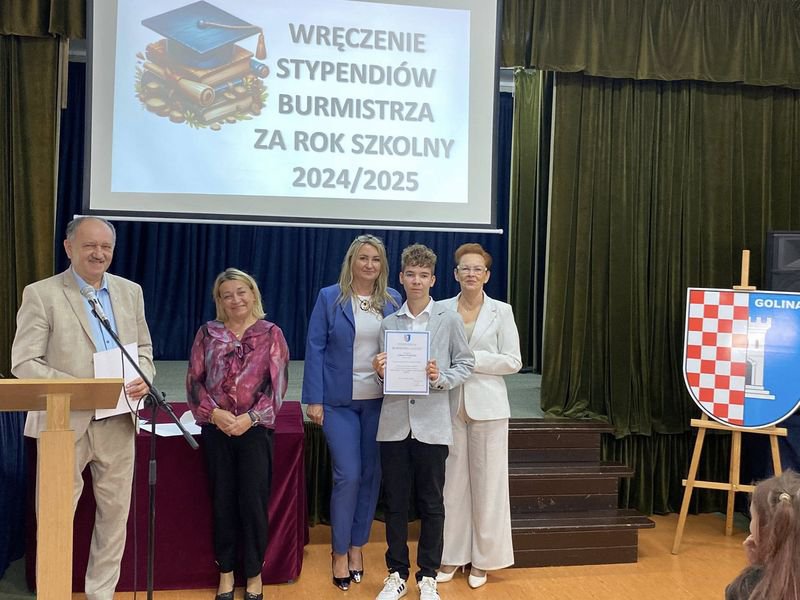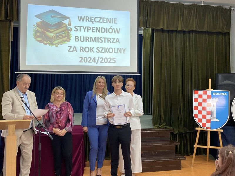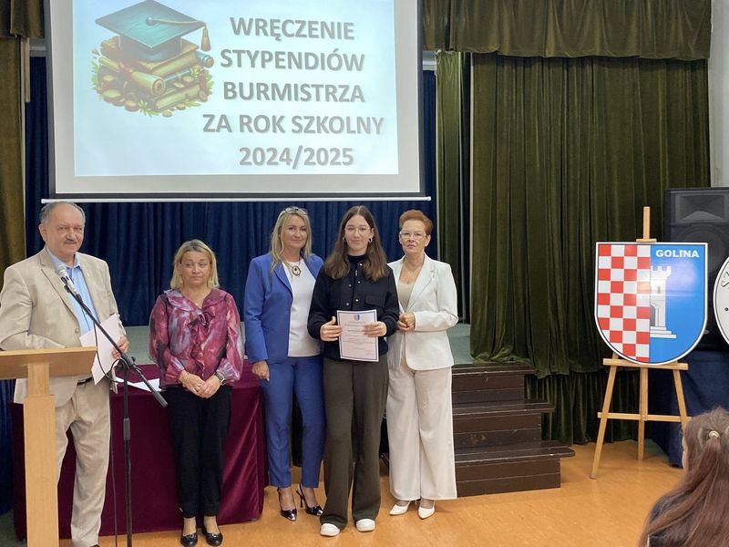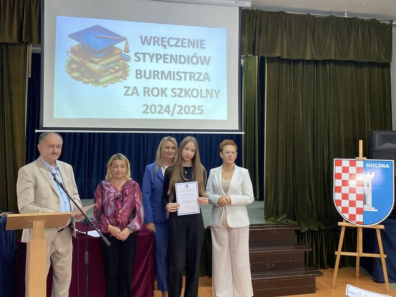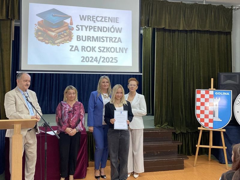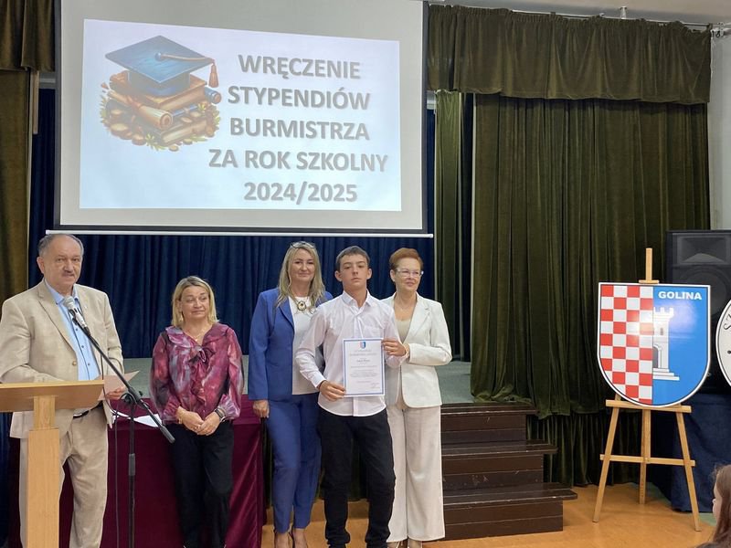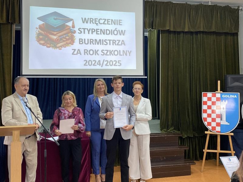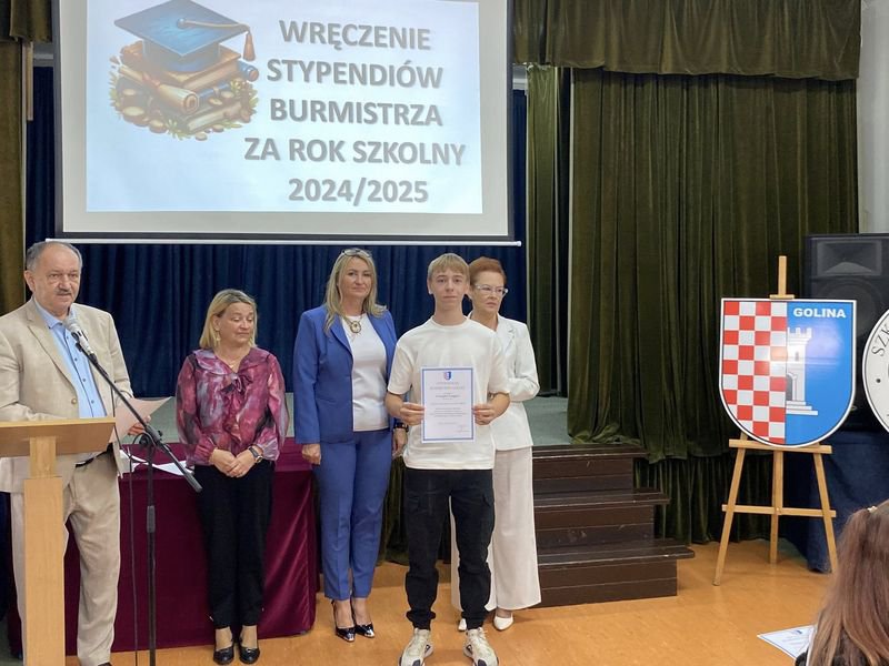 22 września w auli Szkoły Podstawowej im. Juliusza Słowackiego w Golinie miało miejsce uroczyste wręczenie Stypendiów Burmistrza Goliny Mirosława Durczyńskiego. Uczniowie z gminy Golina zostali docenieni nie tylko za osiągnięcia naukowe, ale także sportowe zdobyte w konkursach, turniejach i olimpiadach. Jest to niezwykłe wyróżnienie i motywacja do dalszej pracy. Dyplomy wręczyli Burmistrz Goliny Mirosław Durczyński, Przewodnicząca Rady Miejskiej Urszula Furmaniak, kierownik Centrum Usług Wspólnych Emilia Bajdek oraz dyrektor szkoły Ewa Kutnik.