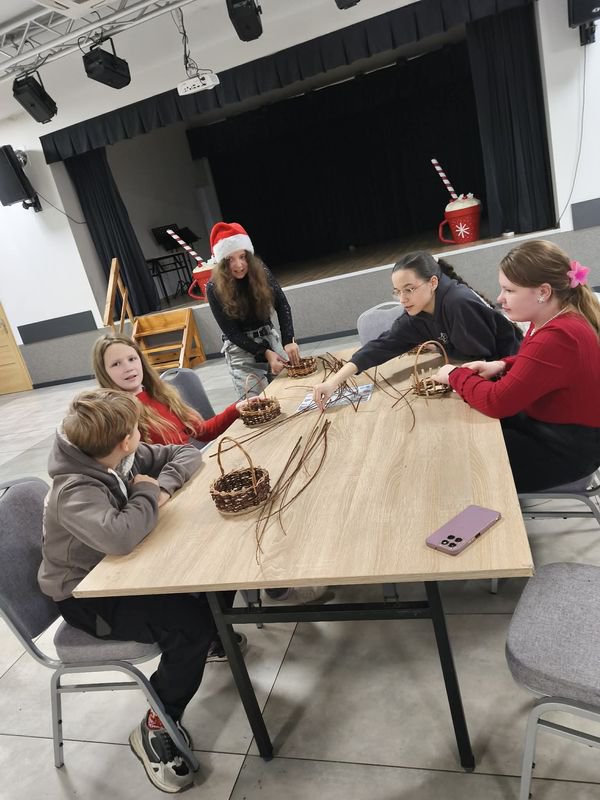 Obchody rozpoczęły się od warsztatów plecionkarstwa, podczas których uczniowie mieli okazję poznać tradycyjne techniki rękodzielnicze. Każdy z uczestników własnoręcznie wykonał piękne dekoracje, które trafiły do domów jako świąteczne ozdoby lub zostały przygotowane z myślą o bliskich jako wyjątkowe prezenty.
