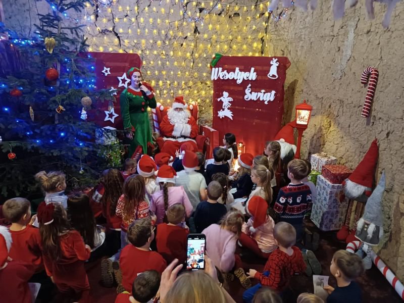Po wizycie w zagrodzie nadszedł najbardziej wyczekiwany moment – spotkanie ze Świętym Mikołajem! Każde dziecko otrzymało upominek, miało też okazję porozmawiać z Mikołajem. Uśmiechy na twarzach dzieci mówiły wszystko – to był naprawdę magiczny dzień!