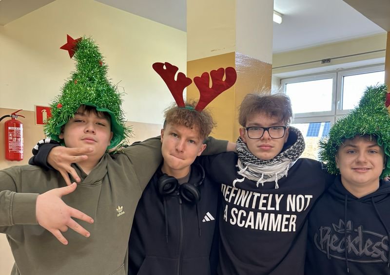 Samorząd Uczniowski zaproponował również dni tematyczne związane z ubiorem. W środę, 17 grudnia, uczniowie i nauczyciele ubrali się w odcieniach czerwieni, symbolizujących ciepło, radość i świąteczną energię. W czwartek szkolne korytarze rozbłysły niczym choinka — dominowały cekiny, brokat oraz świecące elementy, które przypominały świąteczne bombki. Z kolei w piątek królowały świąteczne sweterki, pełne reniferów, choinek i zimowych motywów, które wywoływały uśmiech na twarzach wszystkich uczestników.