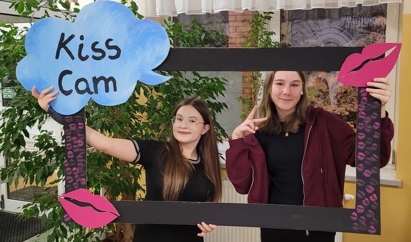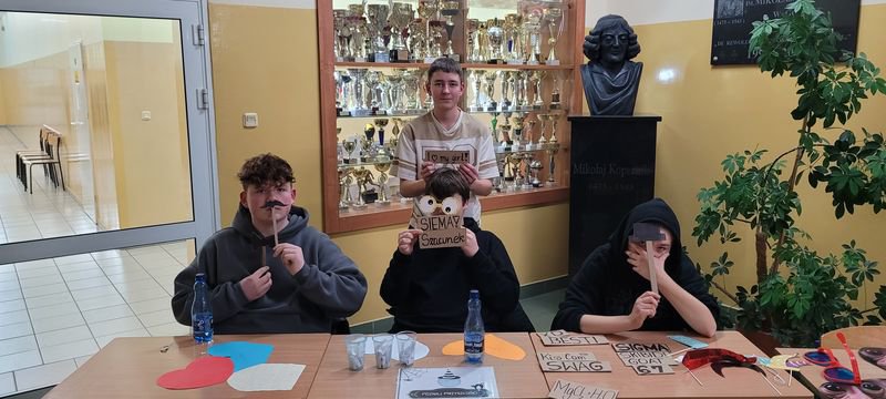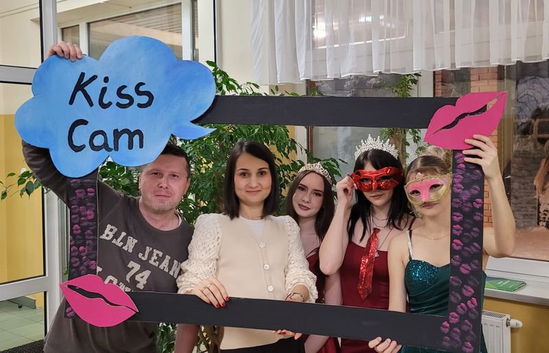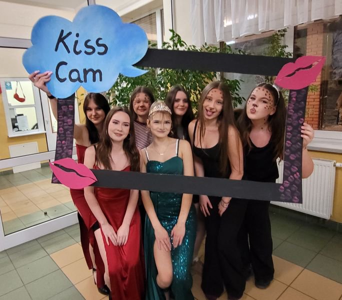 Ogromną popularnością cieszyły się również zabawne fotobudki, wyposażone w kolorowe gadżety – okulary, kapelusze, śmieszne tabliczki i rekwizyty. Uczniowie chętnie robili pamiątkowe zdjęcia z przyjaciółmi, tworząc wesołe wspomnienia z tego wyjątkowego wieczoru.