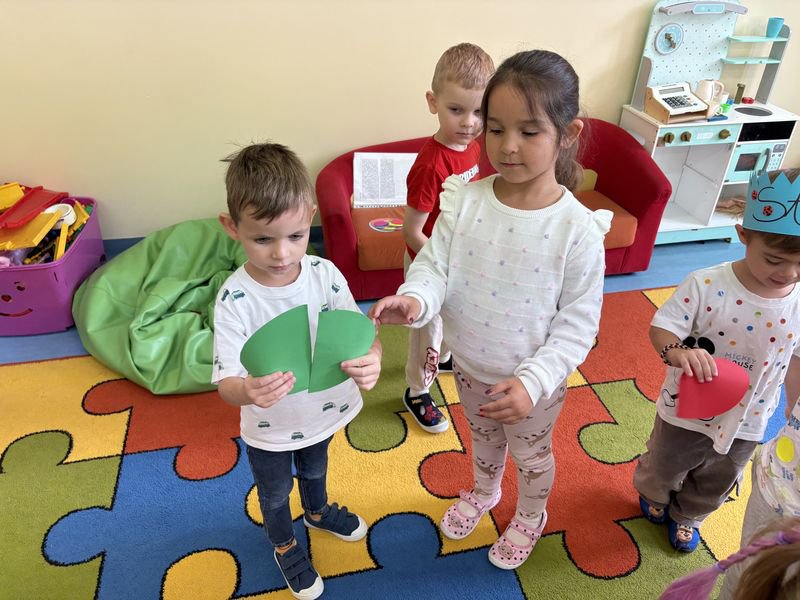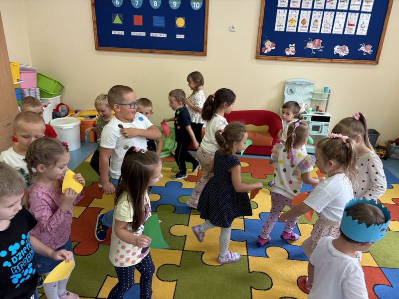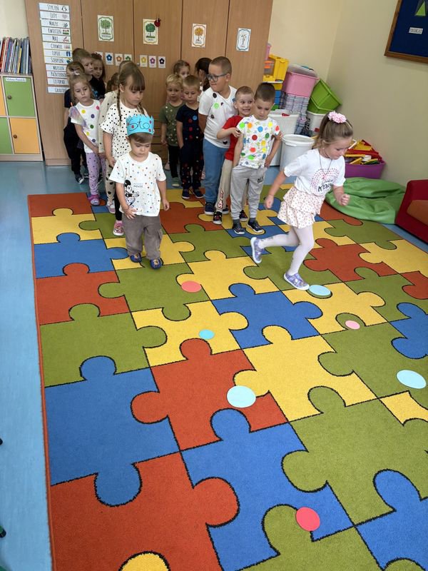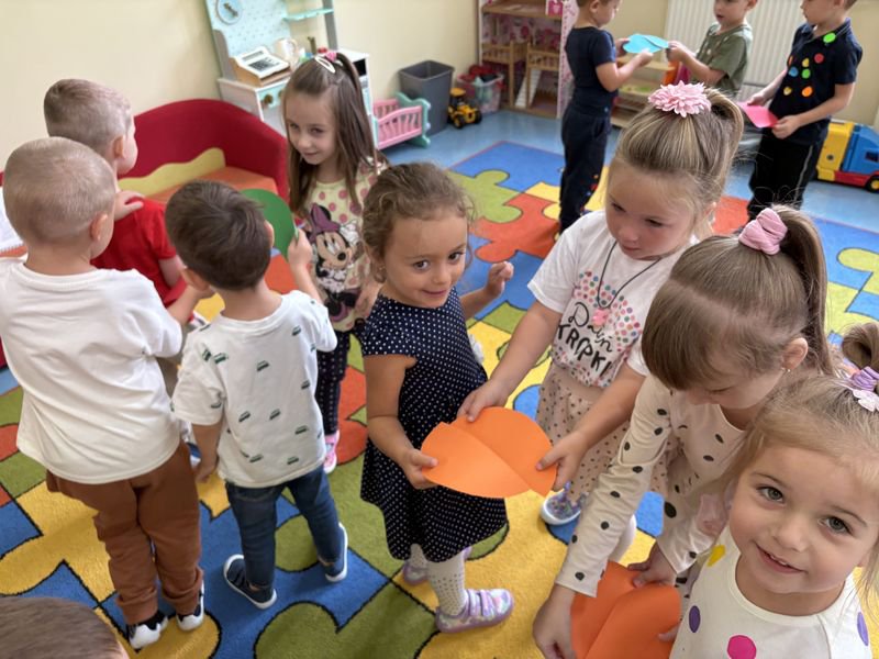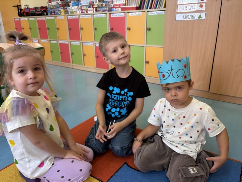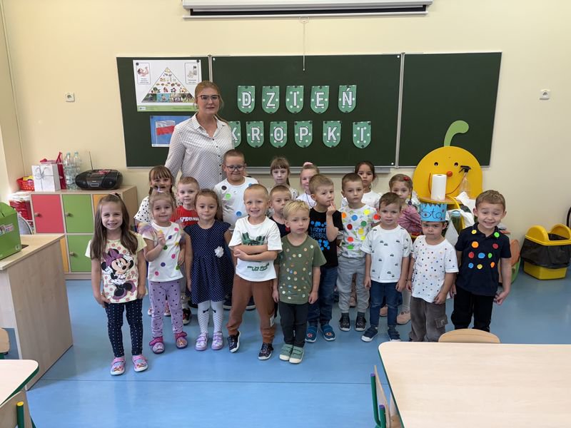 15 września 2025 roku „Biedronki” i „Motyki” celebrowały Dzień Kropki. Nauczyciele przygotowali zabawy tematyczne i ruchowe związane z kropką. Dzieci poznały również historię dziewczynki o imieniu Vashti, dowiedziały się jak być kreatywnym i ważnym każdego dnia. Zwieńczeniem zajęć była praca plastyczna z kropką w roli głównej.