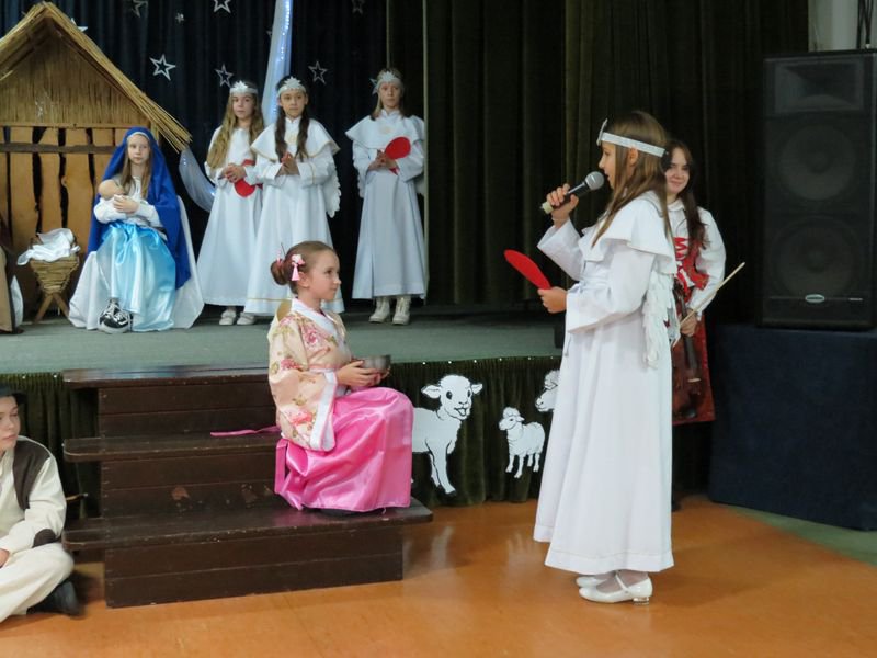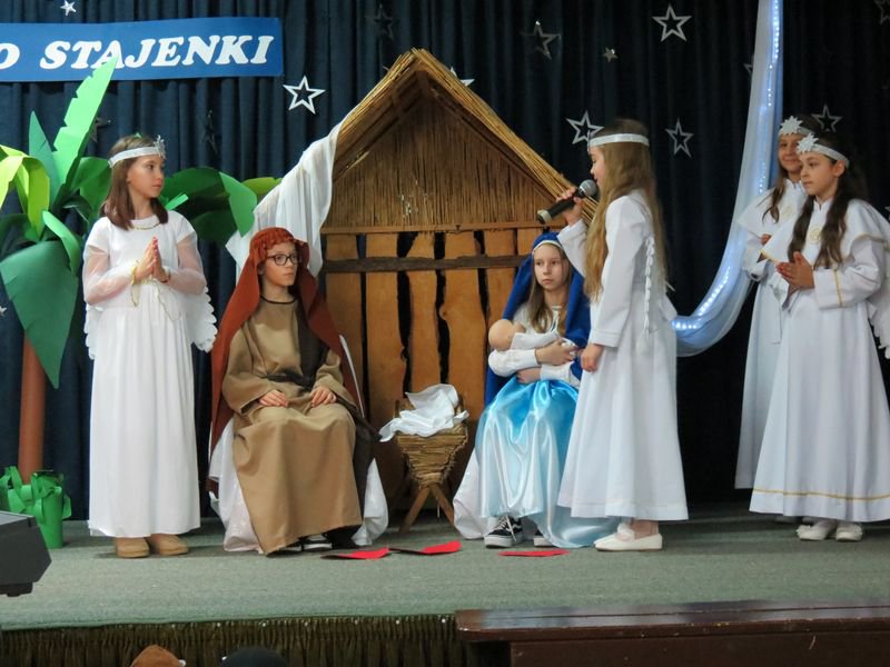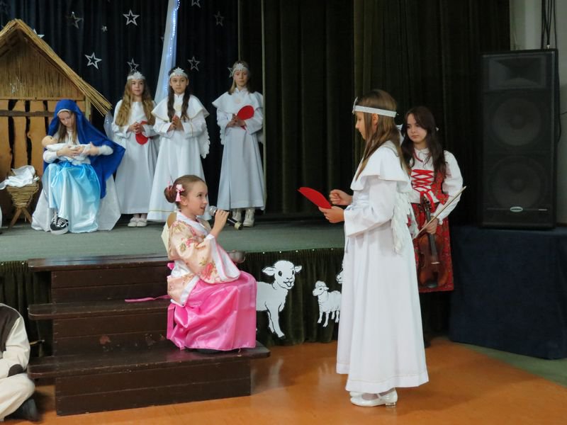 W związku z powyższym, późnym popołudniem 19 grudnia 2024 r. grupa naszych uczniów pod kierunkiem katechetki - s. Liliany Sochy pokazała w jasełkach okoliczności narodzenia Pana Jezusa.