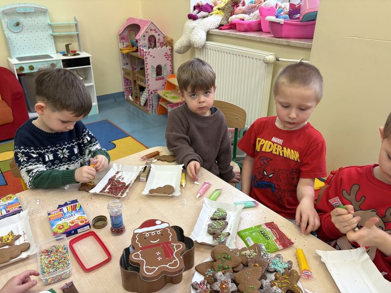 18 grudnia 2025 roku w oddzia艂ach przedszkolnych unosi艂 si臋 wyj膮tkowy, 艣wi膮teczny zapach korzennych przypraw. Dzieci z ogromnym zaanga偶owaniem dekorowa艂y pierniczki. Rozwija艂y przy tym swoj膮 kreatywno艣膰 i zdolno艣ci manualne. Kolorowe lukry, posypki i u艣miechy sprawi艂y, 偶e sala zamieni艂a si臋 w prawdziw膮 piernikow膮 krain臋. By艂 to czas rado艣ci i wsp贸lnej zabawy, kt贸ra wprowadzi艂a nas w magiczny czas. Dzi臋kujemy rodzicom za ogromne zaanga偶owanie w t膮 s艂odk膮 inicjatyw臋.