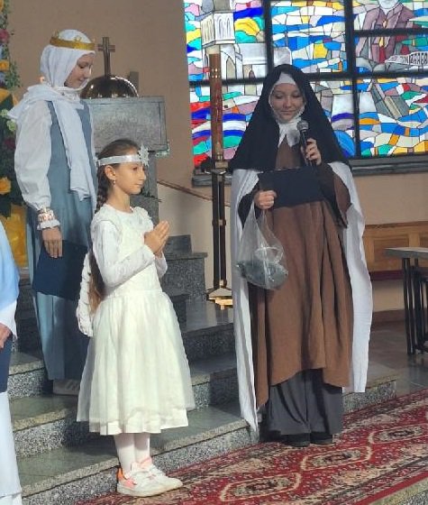 Wspomnianą sztukę teatralną przygotowała katechetka s. Liliana Socha we współpracy z reprezentantami Szkoły Podstawowej w im. Juliusza Słowackiego.