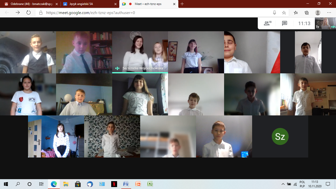 Dokładnie o 11:11 nasi uczniowie i nauczyciele zaśpiewali w trybie online „Mazurka Dąbrowskiego”. Wybrzmiał on donośnie i z dumą z zachowaniem właściwej postawy oraz galowego stroju.