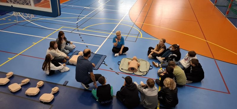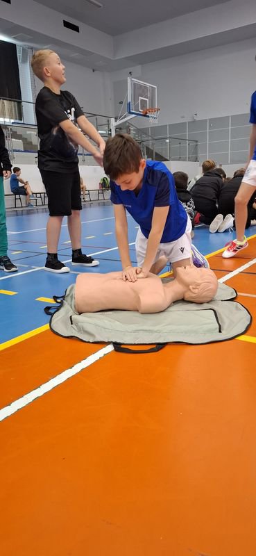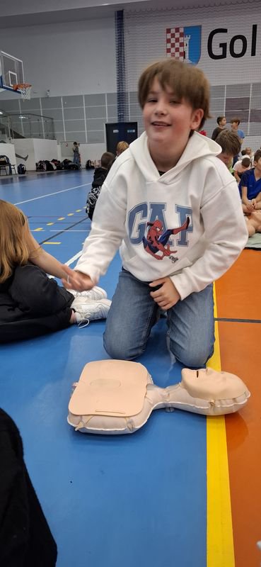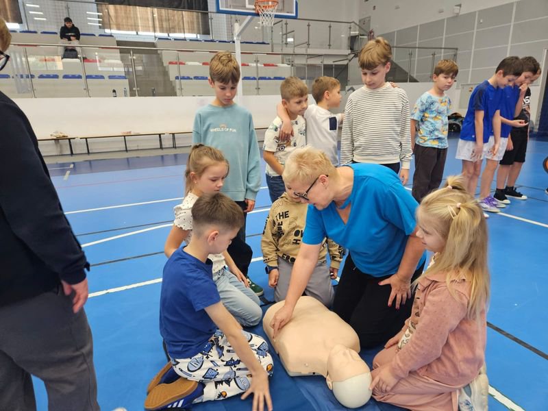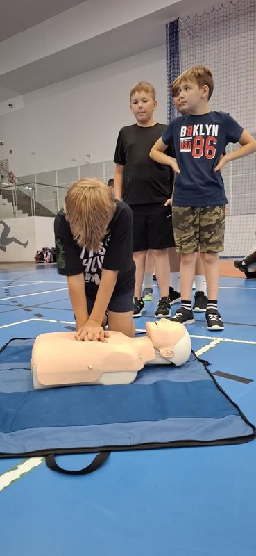 Zajęcia odbyły się w atmosferze pełnej zaangażowania i entuzjazmu. Uczniowie z wielkim zapałem uczyli się sprawdzać przytomność, wzywać pomoc oraz wykonywać uciśnięcia klatki piersiowej i oddechy ratownicze. Dzięki podziałowi na grupy i odpowiedniemu zapleczu dydaktycznemu (fantomy, materiały edukacyjne), każdy miał szansę przećwiczyć procedury RKO w praktyce.