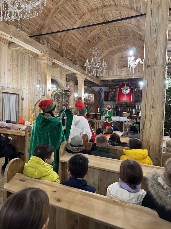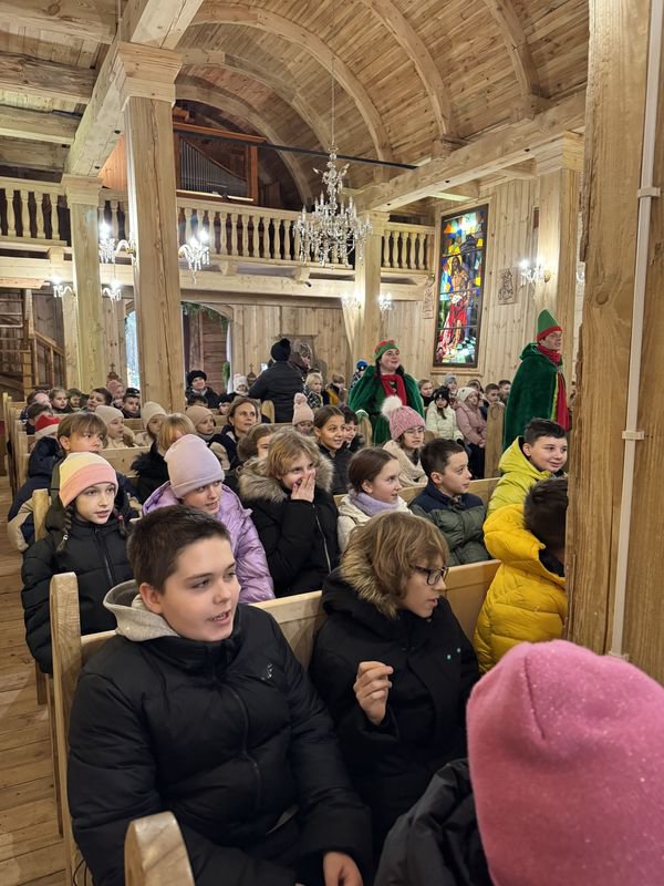 W piątek 12 grudnia 2025r. uczniowie kl. 5 c wraz z wychowawcą panią Karoliną Kulczak i panią Agnieszką Sołtysiak odwiedzili Wioskę Świętego Mikołaja w Skansen Bicz. Organizatorzy przygotowali dla uczestników wycieczki wiele atrakcji: od wspólnego kolędowania w zabytkowej świątyni pw. św. Floriana, zabawy tanecznej, pisania listu do Mikołaja, pieczenia pierniczków, spotkania z Mikołajem aż do zjazdów na pontonach oraz spaceru po mini zoo. Uczniowie odwiedzili również sklepiki, gdzie mogli zakupić świąteczne pamiątki. Piątoklasiści rozbawieni i przepełnieni świąteczną atmosferą powrócili do domów.