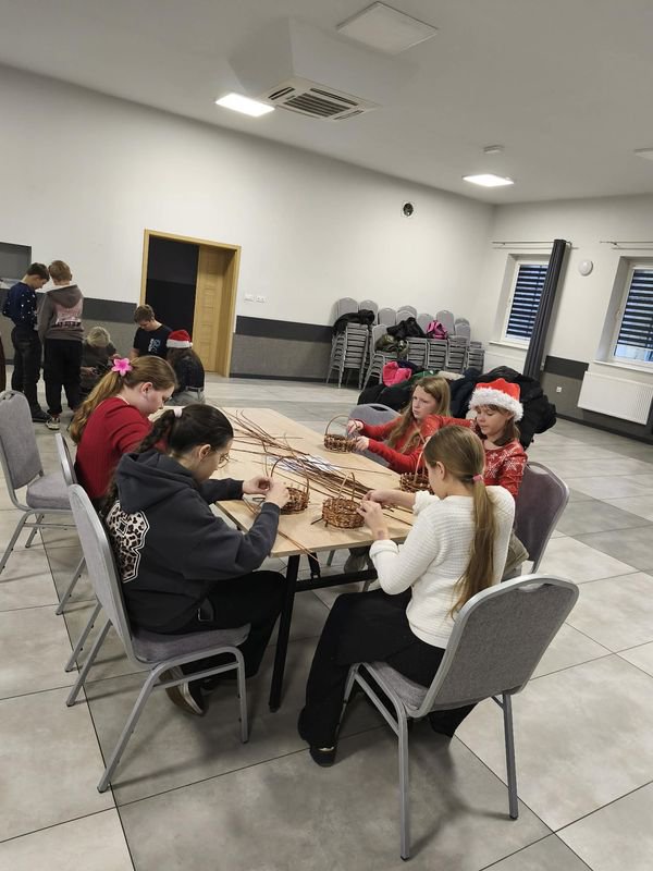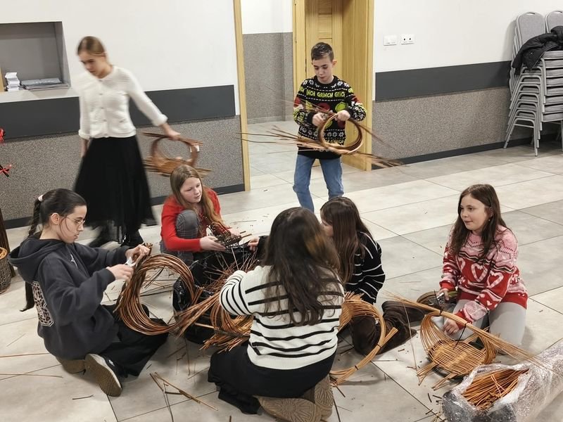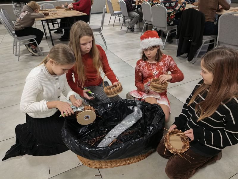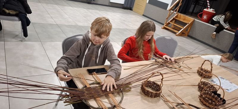 Obchody rozpoczęły się od warsztatów plecionkarstwa, podczas których uczniowie mieli okazję poznać tradycyjne techniki rękodzielnicze. Każdy z uczestników własnoręcznie wykonał piękne dekoracje, które trafiły do domów jako świąteczne ozdoby lub zostały przygotowane z myślą o bliskich jako wyjątkowe prezenty.