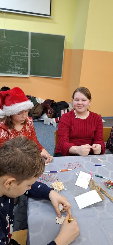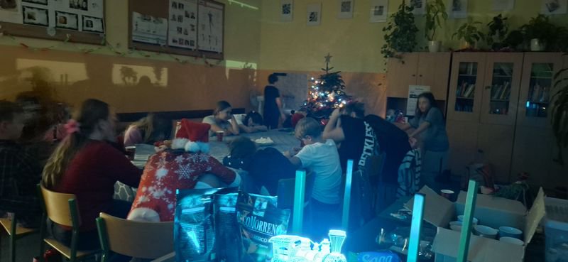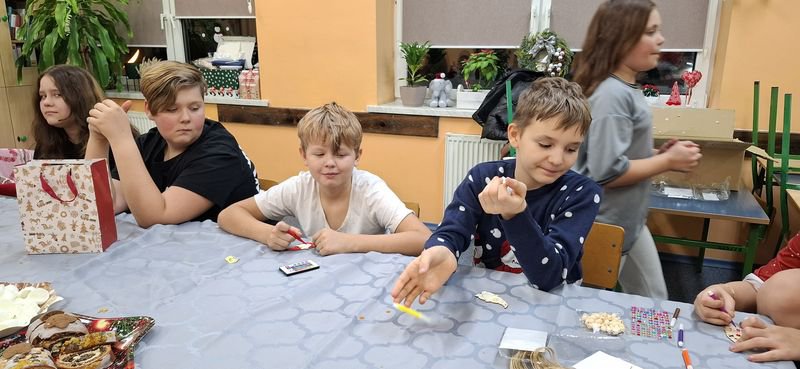 Po warsztatach świętowanie przeniosło się do szkoły, gdzie do późnych godzin wieczornych trwała klasowa wigilia. Były prezenty, wspólne dekorowanie pierniczków w formule DIY, świąteczne gry oraz czas pełen radości, rozmów i integracji.