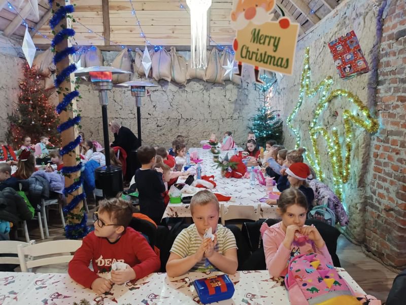 Po wizycie w zagrodzie nadszedł najbardziej wyczekiwany moment – spotkanie ze Świętym Mikołajem! Każde dziecko otrzymało upominek, miało też okazję porozmawiać z Mikołajem. Uśmiechy na twarzach dzieci mówiły wszystko – to był naprawdę magiczny dzień!
