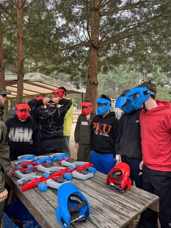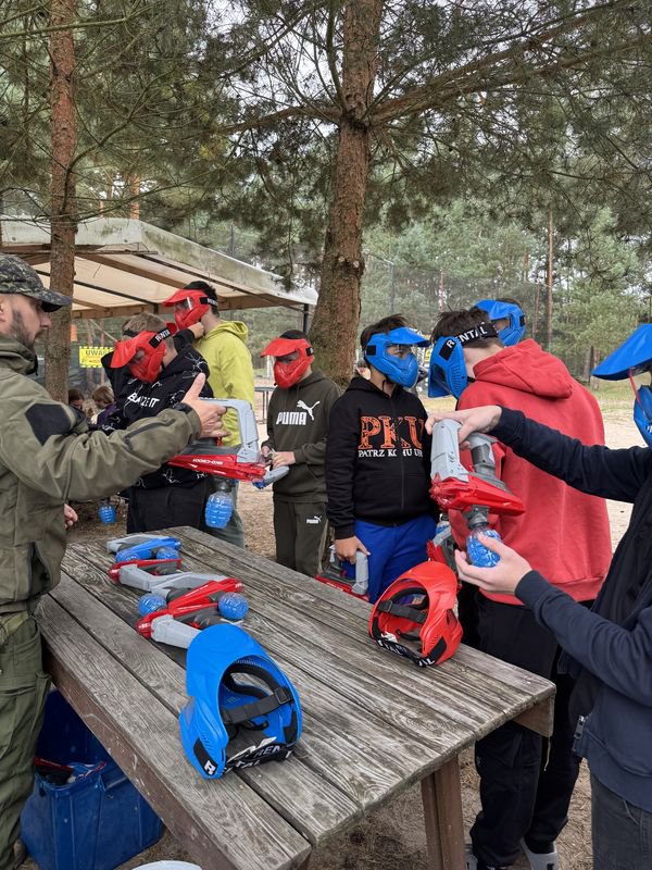 Na miejscu każdy uczestnik otrzymał kask ochronny, a instruktorzy wytłumaczyli zasady gry i kwestie bezpieczeństwa. Następnie uczniowie zostali podzieleni na drużyny i rozpoczęły się emocjonujące starcia. Zabawne sytuacje, szybkie akcje i element rywalizacji sprawiły, że uśmiech nie znikał z twarzy uczestników.
